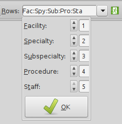 For example, to change the hierarchy to staff, facility, specialty, sub-specialty, procedure, You only have to change staff from 5 to 1, and the others will alter their hierarchy automatically.